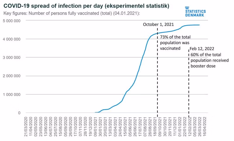 Na začátku minulého chřipkového roku bylo více než 70 procent obyvatel Dánska plně očkováno proti Covidu a do poloviny února 2022 dostalo posilovací dávku 60 procent populace. Procenta by měla být vyšší u starších zranitelných věkových skupin.