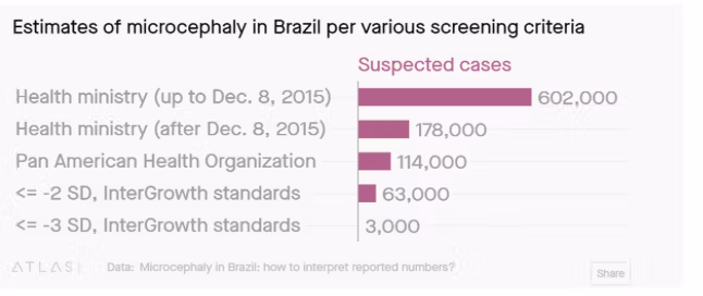 Tento regionální rozpor měl vyvolat přísné přezkoumání nulové hypotézy: Opravdu Zika způsobuje mikrocefalii? Místo toho se ujal příběh: Zika byl padouch a řešením byla vakcína. Na vrcholu strachu v letech 2015–16 měla Brazílie žádná spolehlivá základní linie předchozích mír mikrocefalie pomocí konzistentních lékařských kritérií. Jakmile se prach usadil, byly použity odpovídající standardya diagnóz mikrocefalie se výrazně snížila.